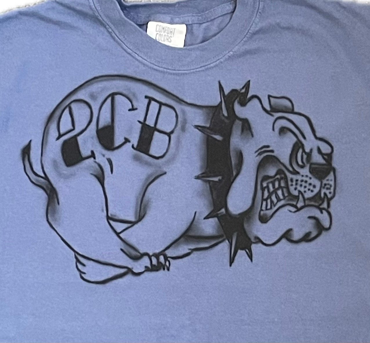 Limited BullDawg T shirt, hand air brushed by our dude Dan Dupuis. Size M, only one left. Comfort Colors Midnight Blue